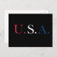 U.S.A. Red White And Blue Lettering Design Postcard