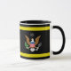 Coffee mug. Classic military design for active or retired Army personnel. Official Army colours form the background for a United States Military Defence emblem. Personalise it with a name, plus rank and "U.S. Army" text. If retired, this text can also be included. All text, however, is easily edited or removed by using the template. For other changes (different type font, colour, size or placement) select "Personalise this design" then select "Edit using Design Tool." Check out "options" for other sizes or styles of mugs. Makes a great gift.