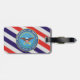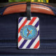 This tag is decorated on the front with a magnificent painting of an American Bald Eagle superimposed on the U.S. Flag. The reverse side is decorated with red, white, and blue, diagonal stripes and the U.S. Department of Defence logo. A highly visible luggage tag. A great gift idea.
