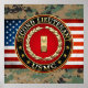 Introducing project “Military Insignia 3D”, featuring top quality military heraldry designs. Here you will find wrapped canvas and framed fine art prints decorated with rank insignia of a U.S. Marine Second Lieutenant (USMC 2ndLt). In the United States, Second Lieutenant is typically the entry-level rank for most commissioned officers. In the U.S. Marine Corps, a second lieutenant typically commands a platoon-size element (16 to 44 soldiers or Marines). People who have graduated from an ROTC program or completed at least 4 years of college and Officer Candidate School may enter as a Second Lieutenant. People with special skills such as lawyers or medical professionals may receive a direct commission to Second Lieutenant and enlisted soldiers can receive a battlefield commission for displaying exemplary leadership and bravery in battle (although this is usually done only during wars with high officer attrition).