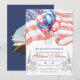 This personalized invitation is part of the Honoring Service: U.S. Military Retirement Collection. Featuring watercolor illustrations of the American flag in the background and patriotic balloons in red, white, and blue on the front, it creates a festive and respectful tone for a retirement celebration. The back of the invitation can be customized with a personal photo of the retiring soldier, making this invite a meaningful keepsake for friends, family, and colleagues. Perfect for military retirement parties, farewell events, and honoring years of dedicated service.