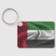 Keychain with the flag of UAE in wavy fabric style design. This design features the United Arab Emirates flag colours and design with a beautiful waving material textured effect. This flag design is a great way to show you are proud to be from UAE.