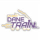 The UAlbany Dane Train logo features bold, angular typography with the words "Dane Train" in large, purple capital letters. Above it, "UAlbany" is written in a smaller, golden font. The design incorporates the silhouette of a train, with smoke billowing from the smokestack. The train's wheels are represented in gold, giving the appearance of movement, and golden streaks on the left emphasize speed and momentum. The logo exudes a dynamic and energetic vibe, combining elements of strength and motion, reflecting a sports or team spirit.