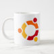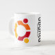 Jumbo mug with the Ubuntu name and Pronunciation, Ubuntu logo, and Tux swatting Windows.