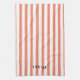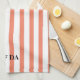 Striped Coral Uff Da KitchenTowel by © Cathy Thompson. Classic Coral and White with Black Lettering. Perfect for your favourite chef.