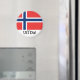 Round magnet featuring the flag of Norway and "Uff da!" which is Norwegian for a sigh of resignation at the situation. Express your inner Norsk!