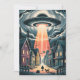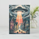 UFO Abduction Night Street Illustration Holiday Card