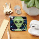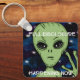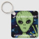 Alien waving with starry background with UFO for those interested in UFOlogy.