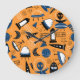 UFO alien, spaceships, kids pattern Large Clock