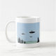 A watercolor of three saucer UFOs over the mountains adorns this fun mug!