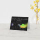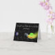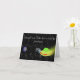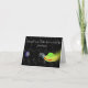 a card for a child interested in space or dinosaurs a funny cartoon of a UFO hitting an asteroid near the earth, in the spacecraft an alien say "careful son that's how we lost the dinosaurs". good fun card for science day.