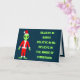 This awesome Christmas card features a digital art image of a green alien with big black eyes. The alien is wearing a Santa hat and outfit ready to celebrate Christmas. It's up to you if you choose to believe in Santa or in Aliens but this cute extraterrestrial sure looks friendly. There is custom text on the front and inside allowing you to fully personalise the design.