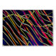 A digital abstract design perhaps reminiscent of light trails at night, caught by time-exposure photography, This version is similar to version 1 but has more trails. Card has been left blank inside, for your message or greeting. The card can also be further customised.