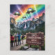 A group of people in a wildlife area with a sign that says UFO Observation Area Please Remain Calm and UFOS flying above in the rainbow skies AI generated scifi fantasy art