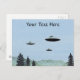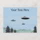 A watercolor, pen ink, and colour pencil drawing of three saucer UFOs over the mountains. Customise by changing the text to suit yourself!