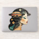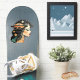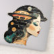 A sticker featuring a woman with her eyes closed. The universe and a UFO / UAP is in her hair.