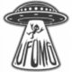 Vector cartoon illustration of a UFO abducting a person that thinks aliens rock with UFOMG text. Tags: UFO, OMG, unidentified, flying, object, oh, my, god, space, spaceship, alien, martian, cartoon, devil, horns, abduction, fourth, kind, humour, saucer