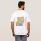 An editable title and slogan accompanies the circular motif over black, yellow and orange bands of the Ugandan flag on the front of this t-shirt. The back displays a detailed map of Uganda.