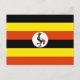 The flag of Uganda (Luganda: Bendera ya Uganda) was adopted on 9 October 1962, the date that Uganda became independent from the British Empire. It consists of six equal horizontal bands of black (top), yellow, red, black, yellow, and red (bottom); a white disc is superimposed at the centre and depicts the national symbol, a grey crowned crane, facing the hoist side.