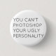 Button featuring "You can't photoshop your ugly personality" quote.