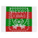 Knitting pattern in ugly sweater style with jingle bells and Merry Xmas text