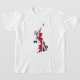 100% cotton so perfect for summer, It is a nicely designed t-shirt, the fabric is soft and the seams finished well, the body of the t shirt has no side seams. I bought a medium size for my two grandsons, aged 9 and 8 it will be slightly big on them but I would rather that than too small