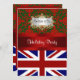 The British Flag, a red ribbon, and a gold look framed gradient white label adorn this party invitation. The upper portion of the invitation is festive red and green damask. It's got the same pattern on the reverse, with a red frame and white area where you can personalise the invitation with your own details. Use the existing template fields, or create your own. This invitation is great for both personal and corporate parties.