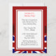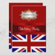 The British Flag, a red ribbon, and a gold look framed gradient white label adorn this party invitation. It's got the same pattern on the reverse, with a red frame and white area where you can personalise the invitation with your own details. Use the existing template fields, or create your own. This invitation is great for both personal and corporate parties.