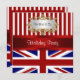 The design: the British Flag, a red & white striped pattern, a red ribbon, and a gold look framed gradient white label adorn this patriotic party invitation. It's got the same pattern on the reverse, with a red frame and white area where you can personalise the invitation with your own details. Use the existing template fields, or create your own. This invitation is great for both personal and corporate parties of all types.