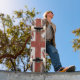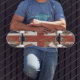 Dirty Union Jack UK British ( brit ) flag graphic design on red brick wall skateboard deck from Ricaso