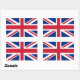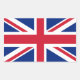 UK Union Jack flag stickers. Rectangular stickers sized 4.5" x 2.7" (4 per sheet). Easy peel-and-stick flags printed on scratch-resistant paper. Buy in bulk to save.