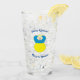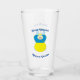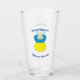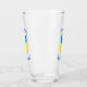 Ukrainian Flag is blue on top and yellow on the bottom. Here, we have an angel dressed in the blue and yellow flag of Ukraine. Above, in blue letters reads SLAVA UKRAINI. Below, in the same colour are the words GLORY TO UKRAINE. Shows here on both front and back of a drinking glass.