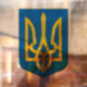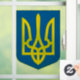 Patriotic Ukrainian coat of arms. Coat of Arms of Ukraine. Lesser Coat of Arms of Ukraine, the so called Tryzub. A stylised trident symbol in gold on a background shield of blue.