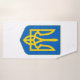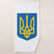 Patriotic Ukrainian coat of arms. Coat of Arms of Ukraine. Lesser Coat of Arms of Ukraine, the so called Tryzub. A stylised trident symbol in gold on a background shield of blue.