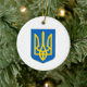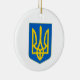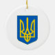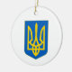 Patriotic Ukrainian coat of arms. Coat of Arms of Ukraine. Lesser Coat of Arms of Ukraine, the so called Tryzub. A stylised trident symbol in gold on a background shield of blue.