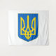 Patriotic Ukrainian coat of arms. Coat of Arms of Ukraine. Lesser Coat of Arms of Ukraine, the so called Tryzub. A stylised trident symbol in gold on a background shield of blue.