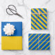 Ukraine Flag Professional and Elegant Striped Pattern Wrapping Paper Sheets featuring a classic Blue and Yellow Striped pattern background in 3 stylish designs. Add your own flag and create your own modern craft party supplies with this Ukraine wrapping paper template.