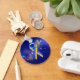 Blue & yellow awareness ribbon to support Ukraine on a dark blue background with colourful bokeh lights
