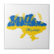 Ukraine typography and wheat ear on Ukrainian flag Ceramic Tile
