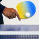 Ukraine yellow blue geometric mesh pattern ping pong paddle