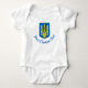 Baby bodysuit with the Ukrainian coat of arms (emblem) with a trident in the centre, and a custom text template for your message
