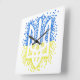 Ukrainian emblem trident tryzub scattering hearts square wall clock