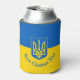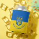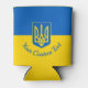 Can cooler with the flag of Ukraine, a blue and yellow flag with the Ukrainian coat of arms (emblem) with a trident in the centre, and a custom text template for your message