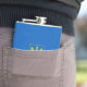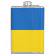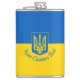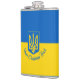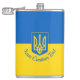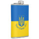 Vinyl wrapped flask with the flag of Ukraine, a blue and yellow flag with the Ukrainian coat of arms (emblem) with a trident in the centre, and a custom text template for your message