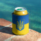Can cooler with the flag of Ukraine, a blue and yellow flag with the Ukrainian coat of arms (emblem) with a trident in the centre