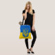 Tote bag with the flag of Ukraine, a blue and yellow flag with the Ukrainian coat of arms (emblem) with a trident in the centre