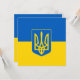 Flat card with the flag of Ukraine, a blue and yellow flag with the Ukrainian coat of arms (emblem) with a trident in the centre