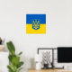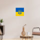 Poster with the flag of Ukraine, a blue and yellow flag with the Ukrainian coat of arms (emblem) with a trident in the centre