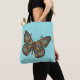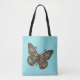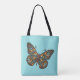 The wings, body, and antennae of a monarch butterfly are decorated with patterns found in pysanka, a traditional Ukrainian method for decorating Easter eggs. These include geometric patterns, plant motifs, and designs based on man-made agricultural objects in shades of red, orange, green, blue, dark grey, and white. This bag is available in multiple sizes and both tote bag and cross body bag styles.
