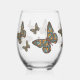 The wings, body, and antennae of a monarch butterfly are decorated with patterns found in pysanka, a traditional Ukrainian method for decorating Easter eggs. These include geometric patterns, plant motifs, and designs based on man-made agricultural objects in shades of red, orange, green, blue, dark grey, and white. This glassware is also available in can glass and rocks styles.